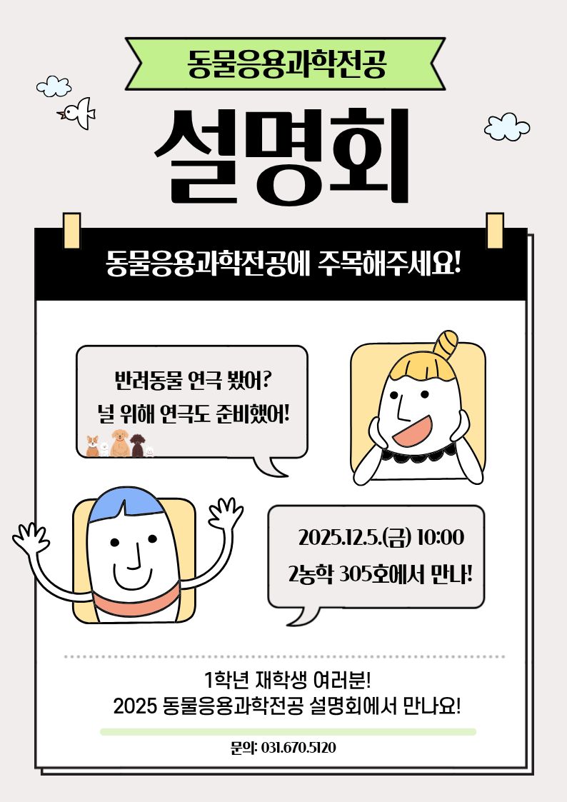 2025년 동물응용과학전공 설명회 안내