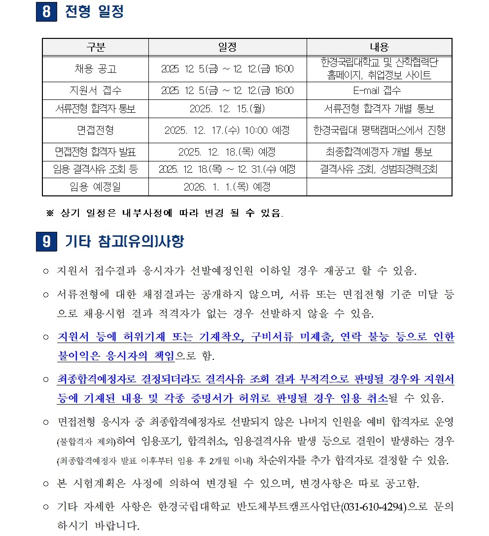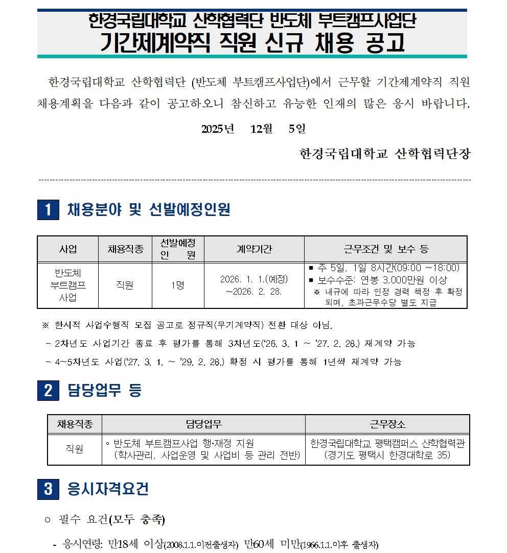 [채용공고] 한경국립대학교 산학협력단 반도체 부트캠프사업단 계약직원 신규 채용