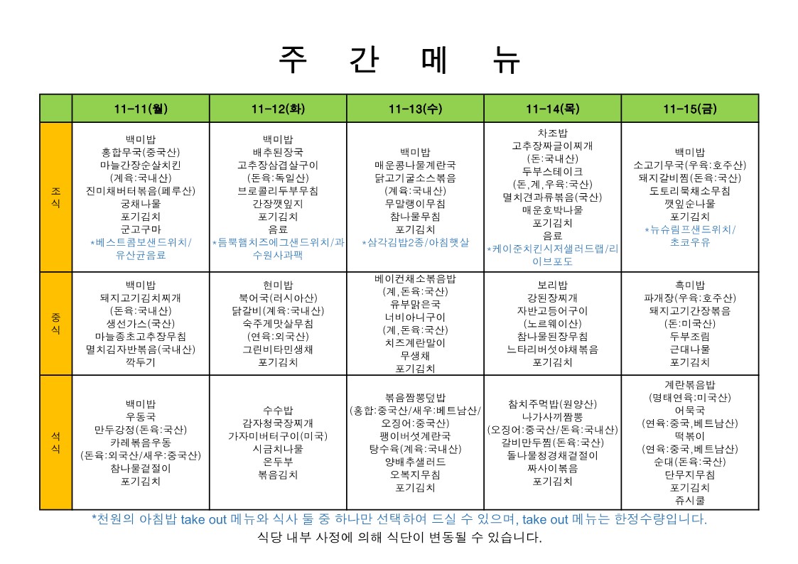 2024. 11. 11.~2024. 11. 15. 주간식단표