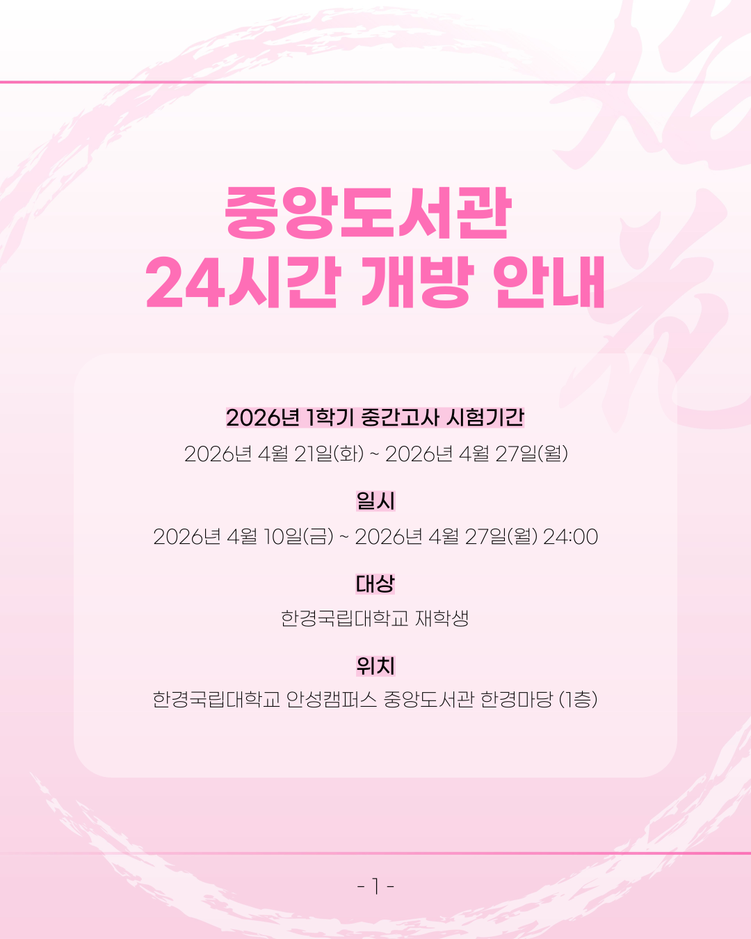 μνκΈ°κ° λμ μνν νμ΅μ μν΄ μ€μλμκ΄μ 24μκ° κ°λ°©ν©λλ€.